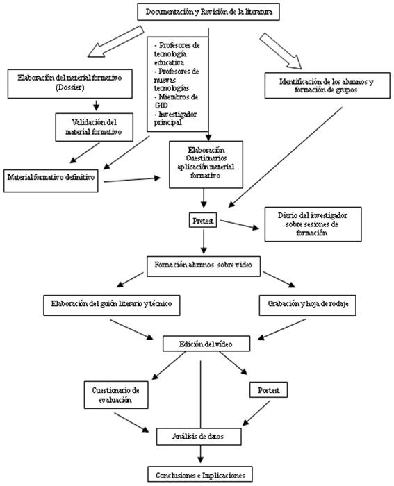 Se elaboraron tres instrumentos de recogida de información, que han servido para reflejar los hechos que han ocurrido durante todo el proceso que ha durado el trabajo: - Cuestionario para recoger los conocimientos sobre estudio de casos y medio vídeo que tienen los alumnos. Este cuestionario se administró al principio del desarrollo del trabajo (pretest), y al terminar todo el trabajo (postest), con la pretensión de investigar el grado de aprendizaje que ha habido y las evoluciones de éste. - Cuestionario para analizar diversos factores como la valoración sobre el trabajo en grupo, sobre los pasos seguidos, sobre la coordinación del trabajo, etc. - Diario del investigador: en él se redactaron las observaciones de las distintas sesiones de trabajo con cada uno de los grupos participantes que son coordinadas por los investigadores. Es adecuado para extraer conclusiones y propuestas de mejora. |